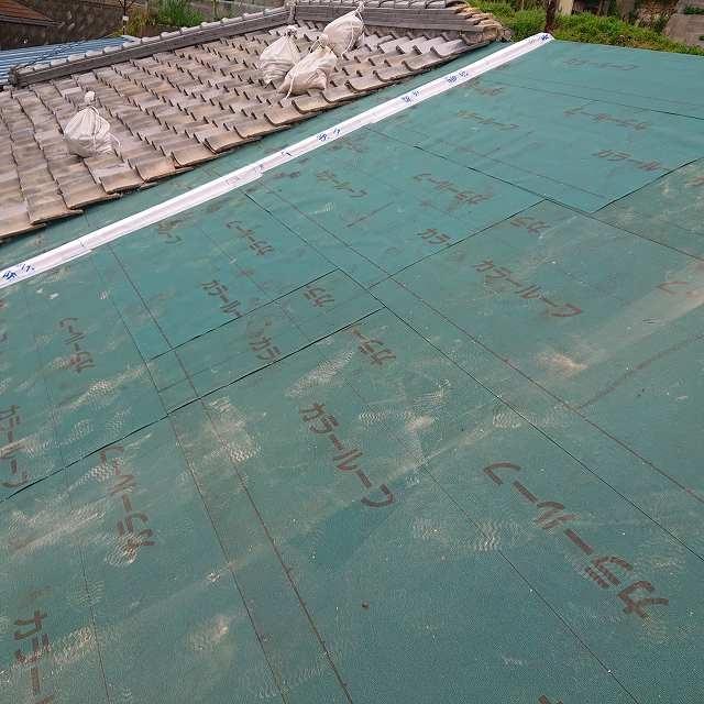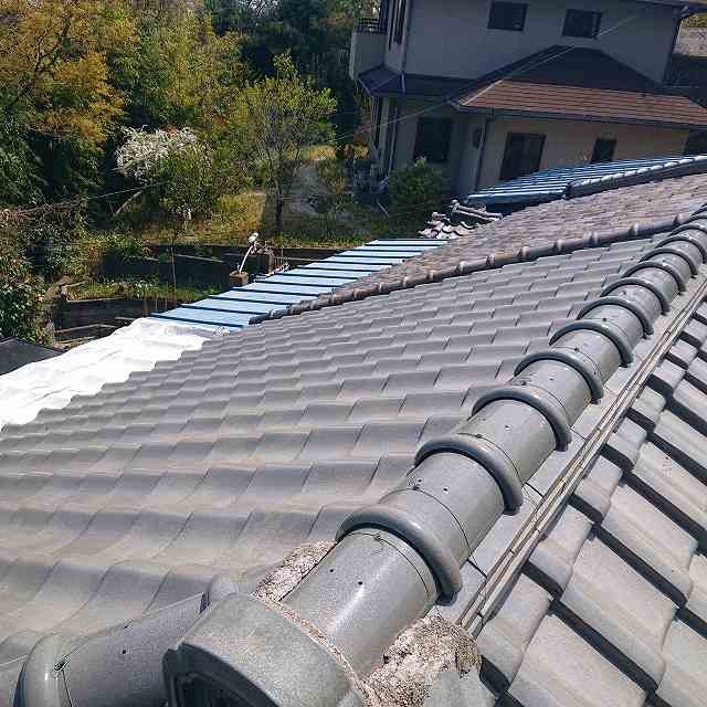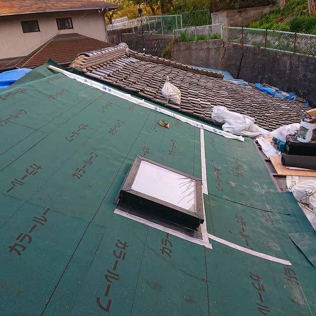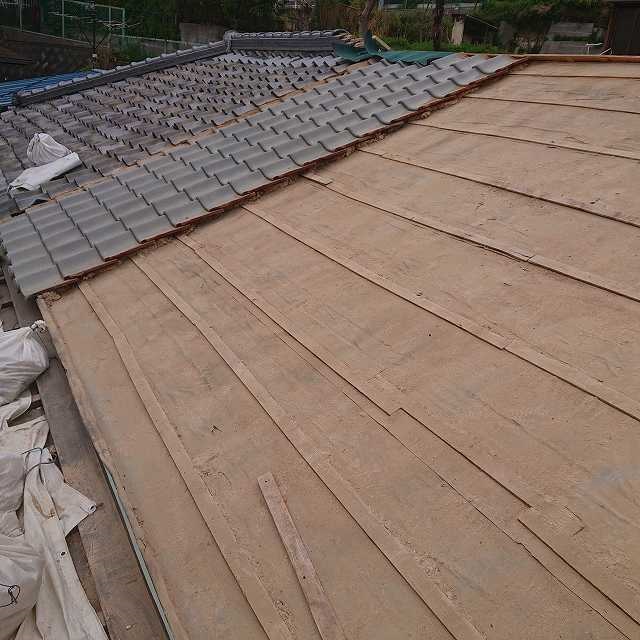 - 既存屋根いぶし瓦=断熱材被覆ガルバニウム鋼板屋根葺き替え