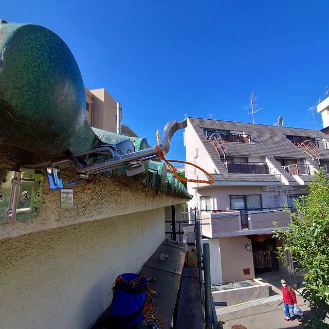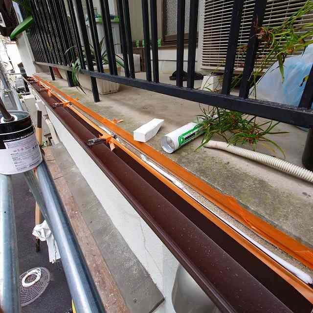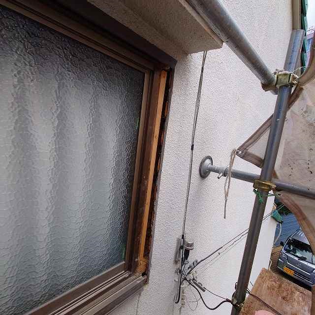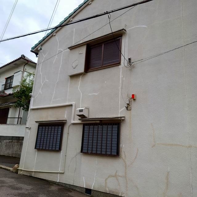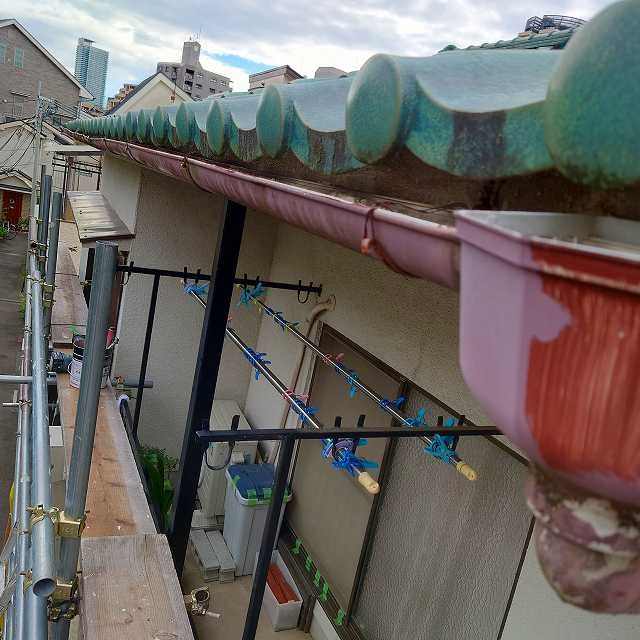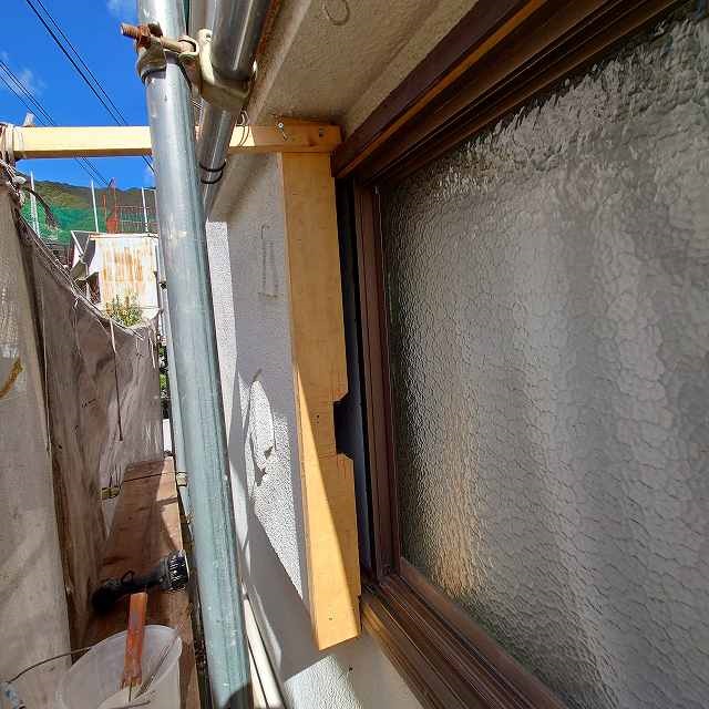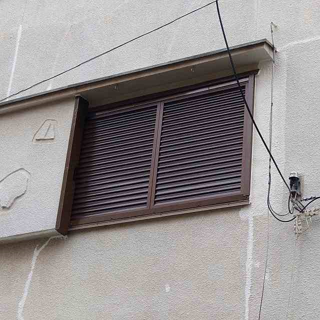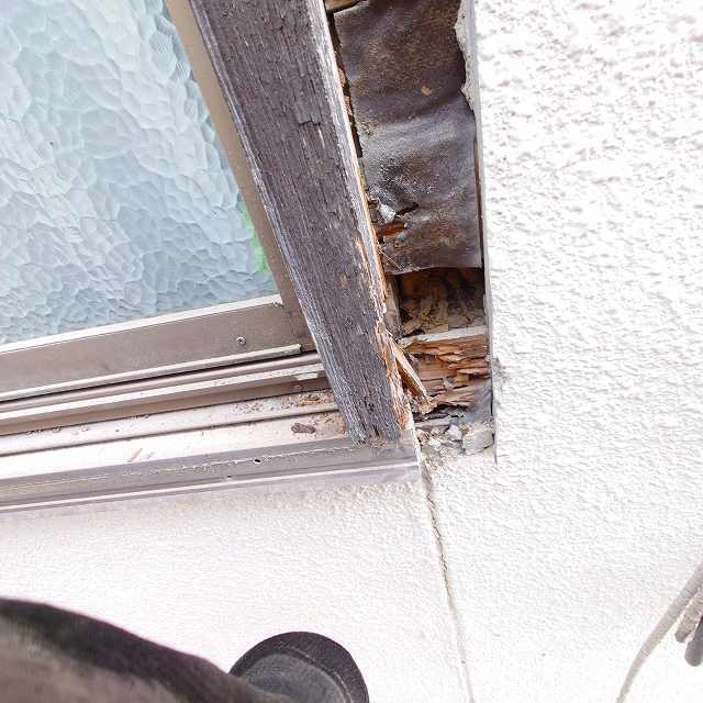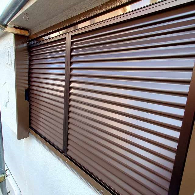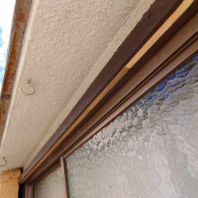 北面樋の劣化により軒樋継ぎ目、受に損傷があり雨が滴り落ちてくるのと瓦のズレ等により雨天時オーバーフロー現象が起きるとの事。西面2階の木製雨戸は西風雨戸の為近年の西日は著しく照らされ木製も相まって眩しすぎるとの事で弊社に依頼がきました。北面の樋はワンサイズUPした軒樋を設置、支持金具はSUSを使用雨戸はスチール雨戸に変更。尚、腐食が進行していた木部は取替え対応しました。