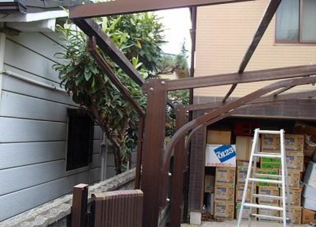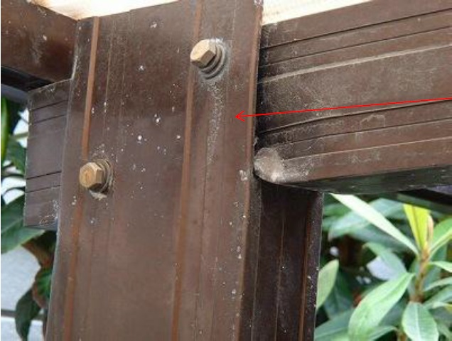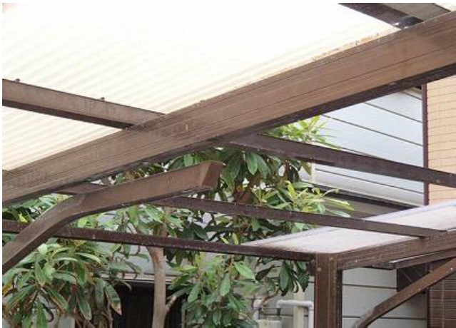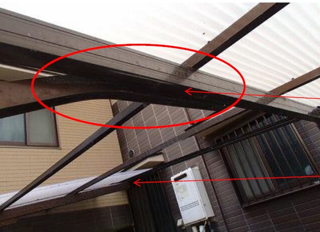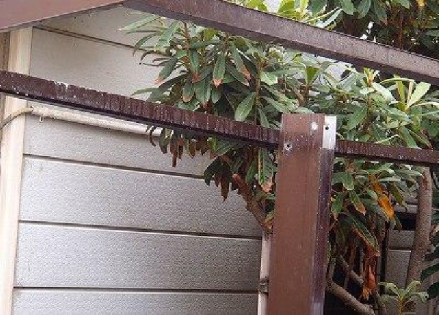 カーポートの屋根を支える梁や柱を支える折曲部が脆く折れかかっている危険な状況でした。これでは強風のときに屋根が持っていかれて大変な事故につながりかねません。イースタイルなら補強補修をして復元塗装までトータルで仕上がりも抜群の状態に甦らせる技があります。